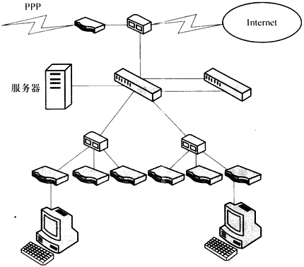 某学校计划建立校园网,拓扑结构如图12-5所示。该校园网分为核心、汇聚、接入三层,由交换模块、广域网接入模块、远程访问模块和服务器群四大部分构成。