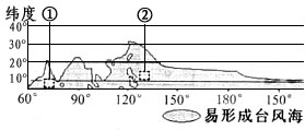 下图是北半球易形成台风海区分布示意图。读图,完成1—3题。