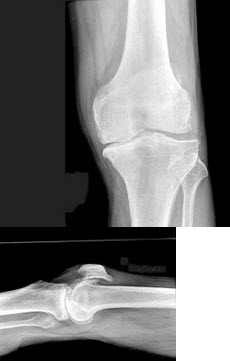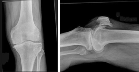 男,76岁,左膝关节长久站立时疼痛,可捫及捏发音,请结合图像,选出最可能的诊断