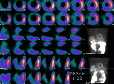一患者的99Tcm-MIBI心肌灌注显像如图,正确的诊断是()。